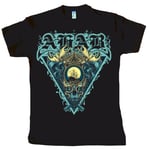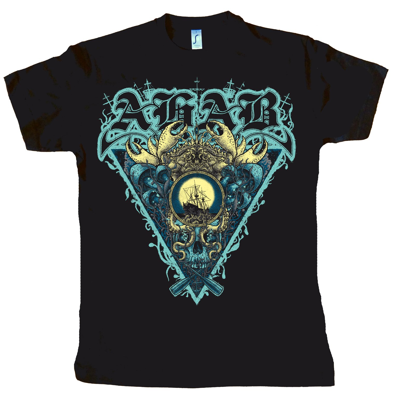 Four colored print on front of a black "SOL´s" T-shirt